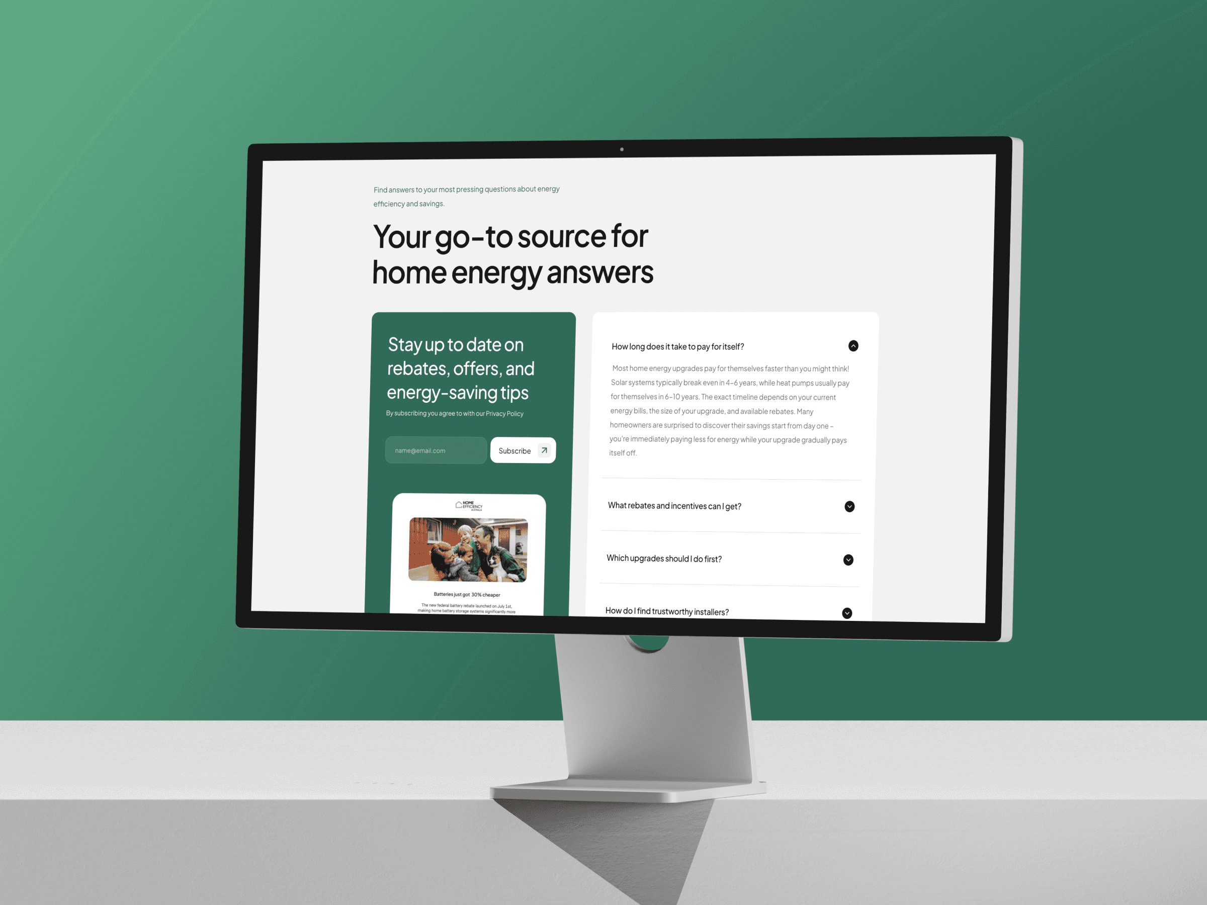 Home Efficiency Australia helps Australians find the most effective home energy upgrades using a simple score that shows which improvements save the most.